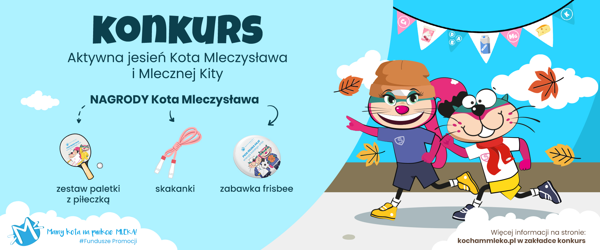 Jesień to idealny czas na kreatywną zabawę. Ogłaszamy nowy konkurs plastyczny: „Aktywna jesień Kota Mleczysława i Mlecznej Kity”!